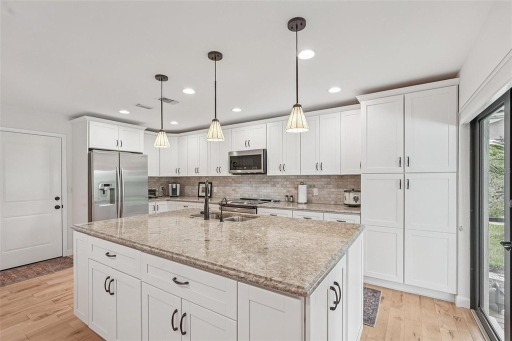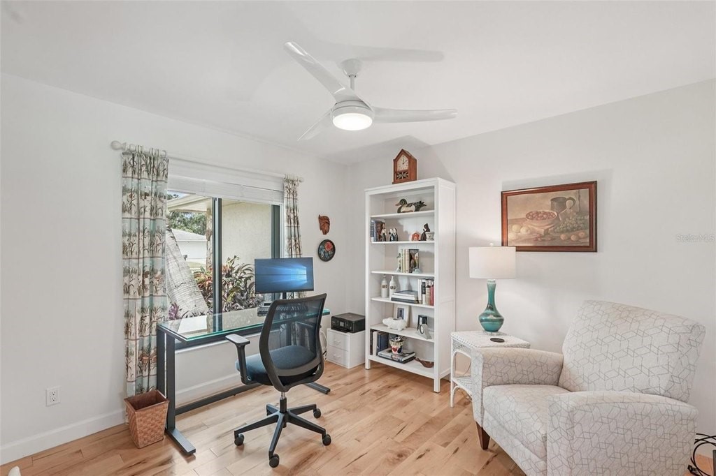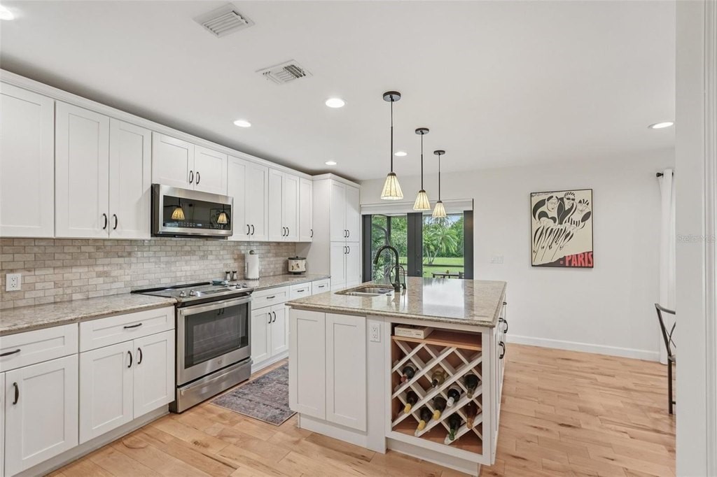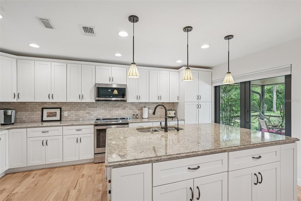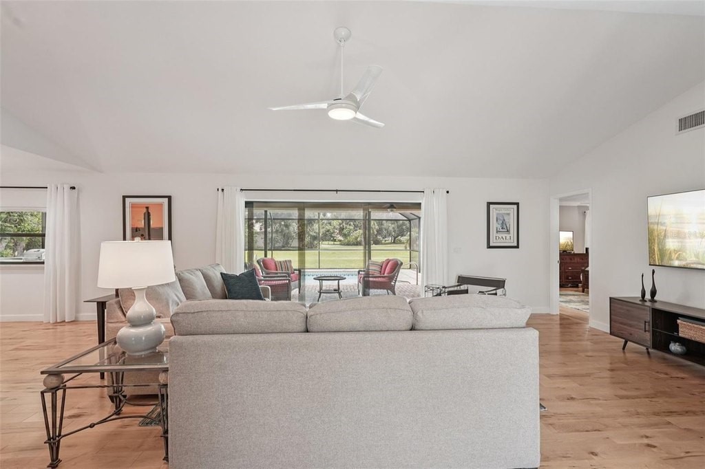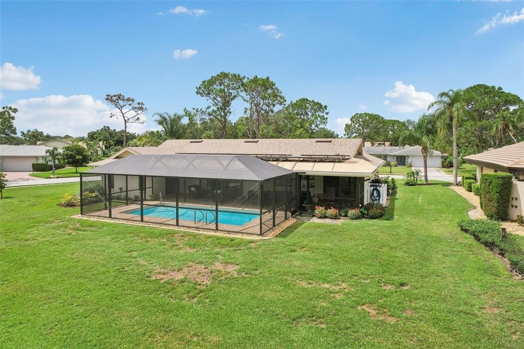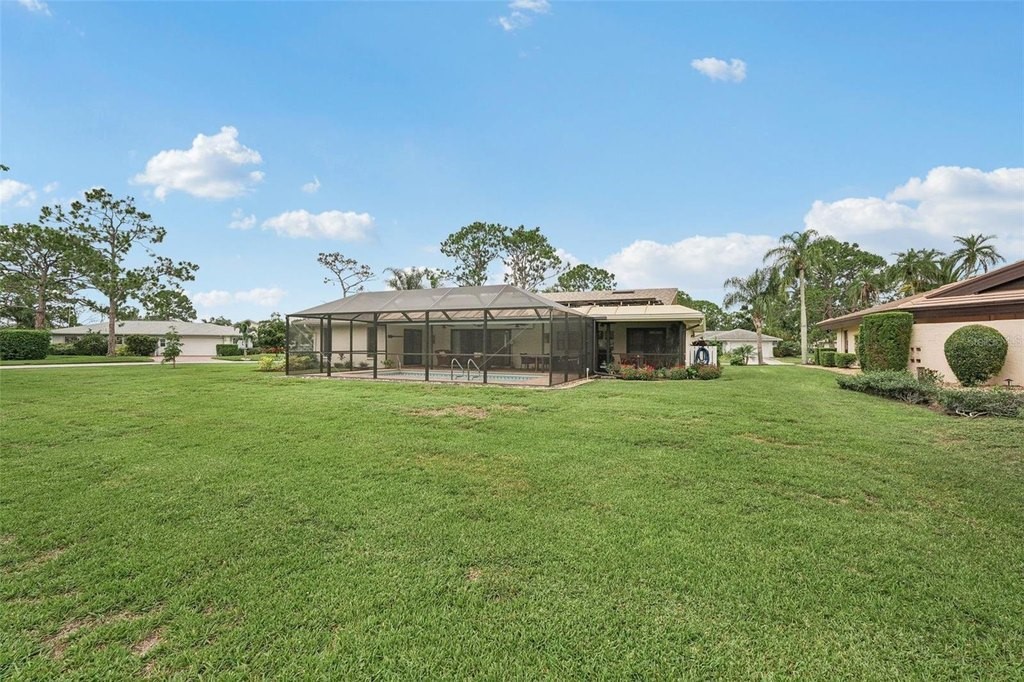 Welcome to your dream home at 5283 Everwood Run, nestled on an expansive oversized corner lot of over 16,000 square feet. This beautifully updated two-bedroom, two-bathroom plus den residence offers a perfect blend of luxury and comfort in the heart of Sarasota. Enjoy breathtaking views of the Meadows Golf Course's 13th hole and 14th tee from the inviting pool area, making this property a true oasis for golf enthusiasts and nature lovers alike. This charming home features a versatile office or den that can easily serve as a potential third bedroom, providing ample space for family and guests. Recent renovations and upgrades include a newer roof equipped with upgraded hurricane tie-down straps and impact-resistant windows and doors, including the garage door, which significantly reduce homeowners’ insurance costs. The property boasts owned solar panels installed on the rear roof, ensuring lower energy costs with an existing FPL agreement. Additionally, new blown-in R30 attic insulation was added in 2024 for enhanced energy efficiency, and the exterior and interior have been freshly painted, complemented by new exterior lighting. The elegant paver driveway and front walkway enhance the home's curb appeal. Modern amenities abound, including a whole house water softener and treatment system installed in 2024 for improved water quality, as well as a reverse osmosis water treatment system in the kitchen for pure drinking water. Solid maple flooring throughout the living areas provides a warm and inviting atmosphere. The renovated kitchen, dining, and living areas have been thoughtfully redesigned to create an open floor plan that overlooks the sparkling pool, perfect for entertaining and family gatherings. The guestroom has been reconfigured to provide a second ensuite bedroom for added convenience. Recent upgrades also include the complete removal of popcorn ceilings with a smooth skim coat plaster finish, new recessed lighting, and a fire protection system. New interior solid shaker-style doors, trim, and hardware, along with new 5-inch high baseboards throughout the home, add to the modern aesthetic. The new HVAC system with UV light protection installed in 2022 and the water heater replaced in 2024 ensure worry-free living. Step outside to discover your outdoor paradise, featuring a newly installed pool and lanai cage completed in 2024. The updated and sealed pool pavers, along with a new pool heater and high-efficiency pool filter, ensure your pool is ready for year-round enjoyment. This meticulously maintained home is not just a residence; it’s a lifestyle. Don’t miss the opportunity to make this exceptional property your own. Schedule a private showing today and experience the perfect blend of luxury, comfort, and stunning views at 5283 Everwood Run!